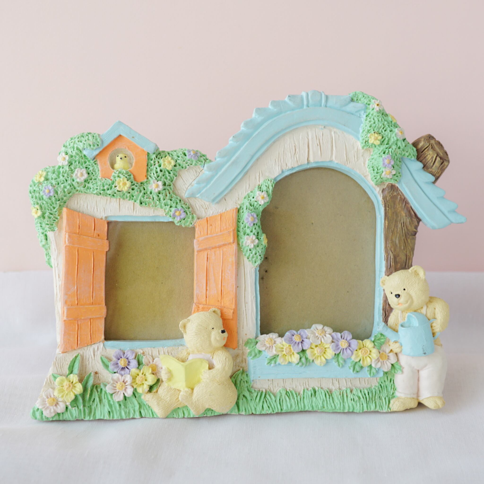 窓辺でガーデニングをしたり、読書を楽しむくまたちがとても可愛いダブルの写真フレームです。