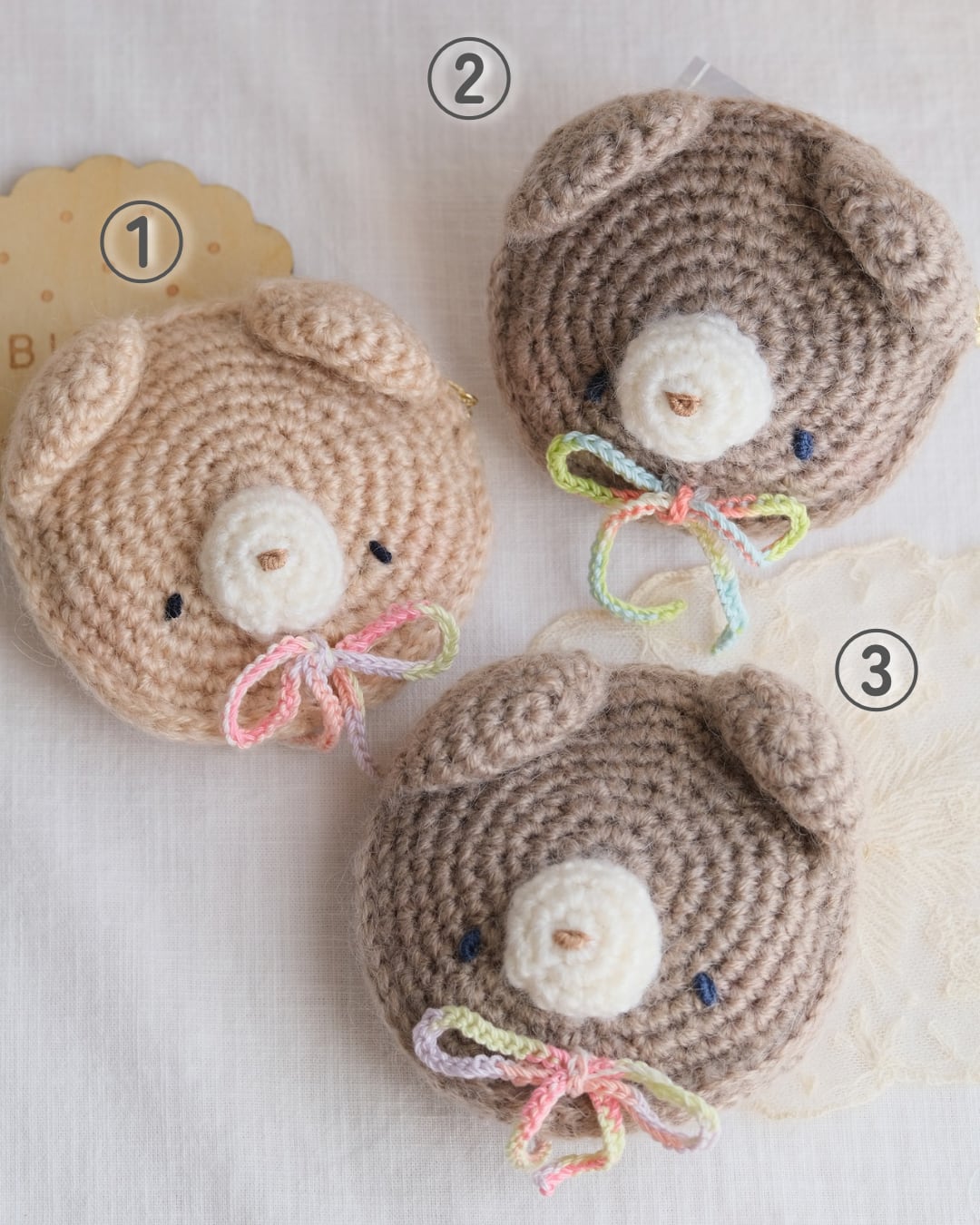 ②、③はリボンの色に違いがございます。