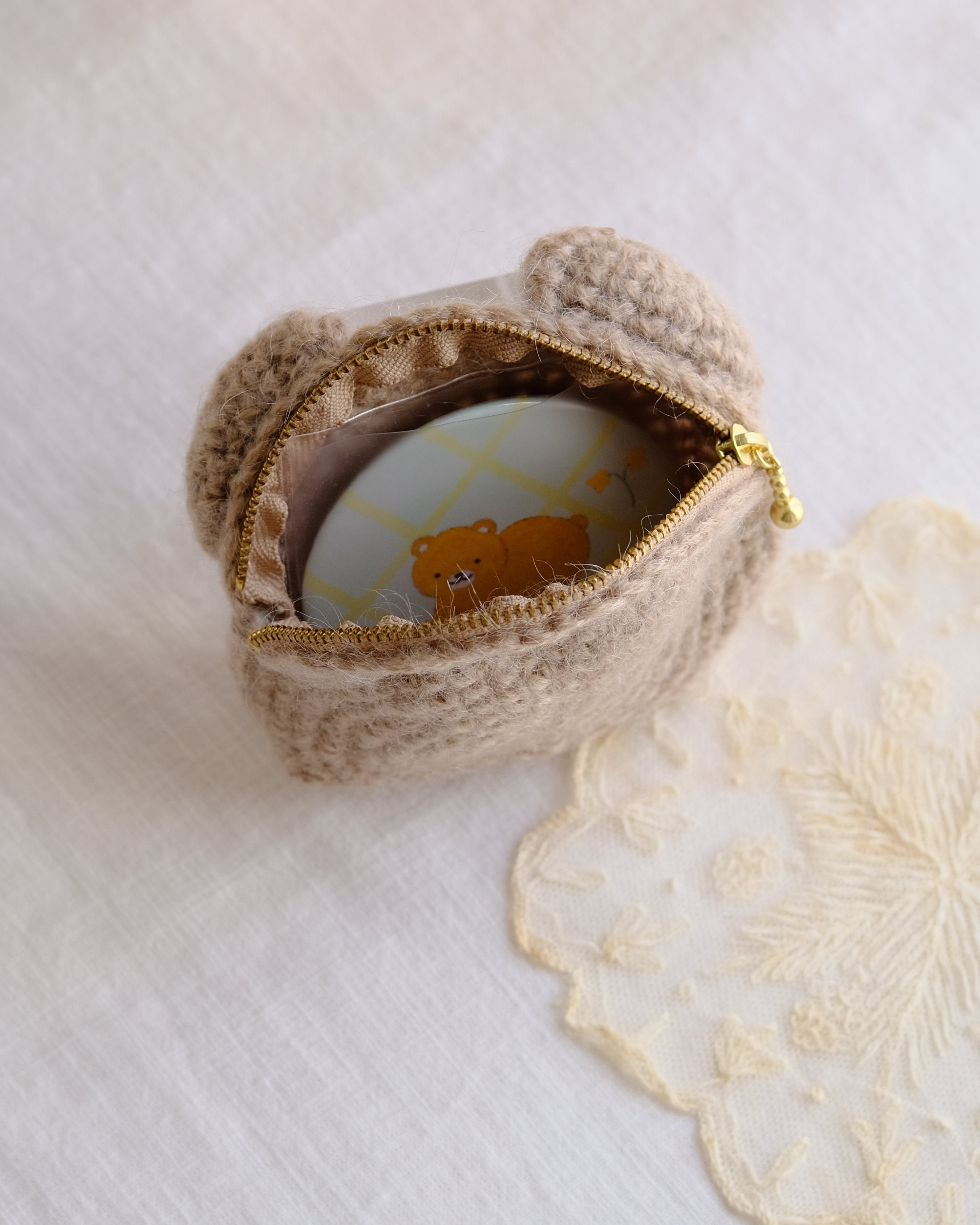 “くまぴろ”ちゃんのお顔ポーチです。