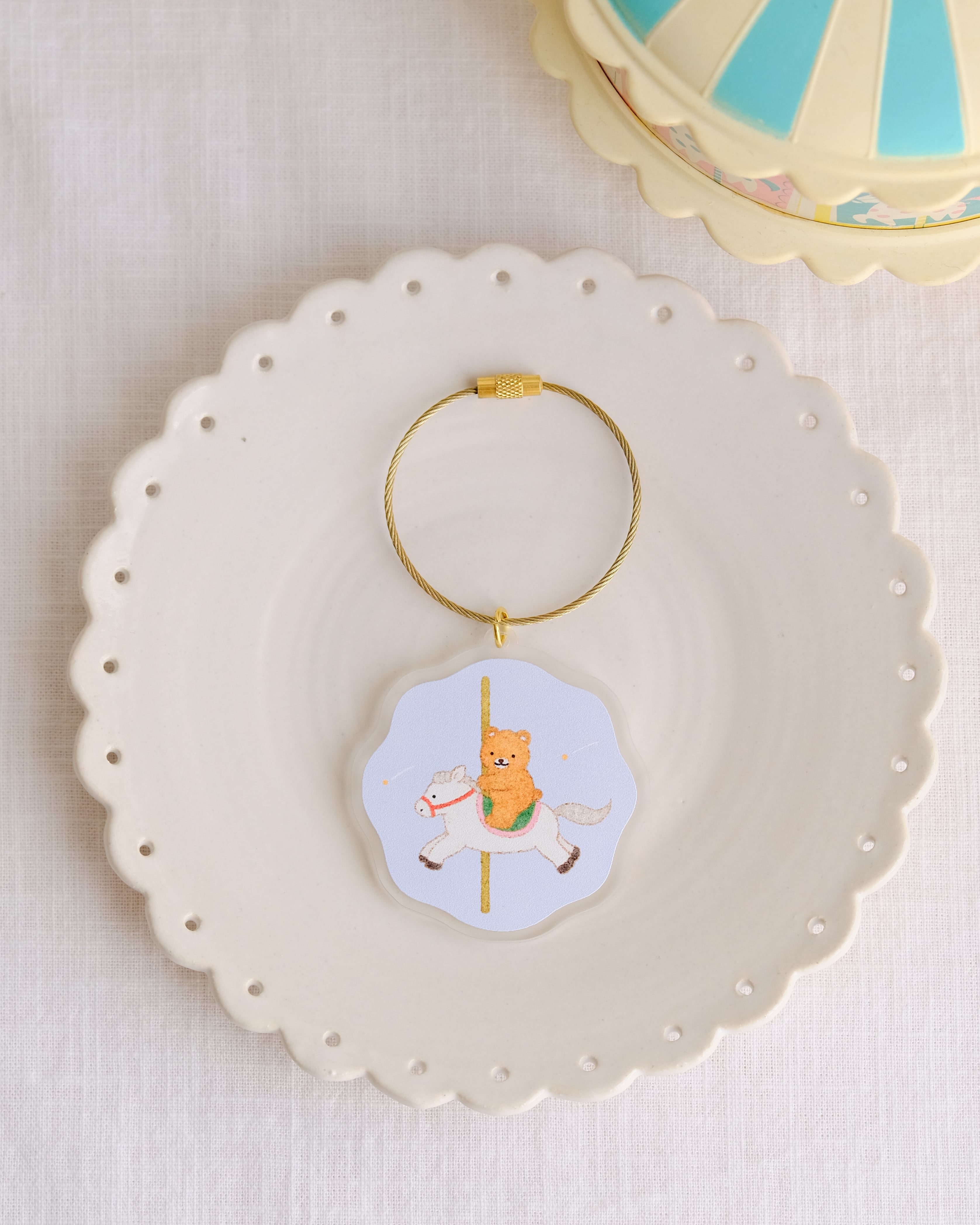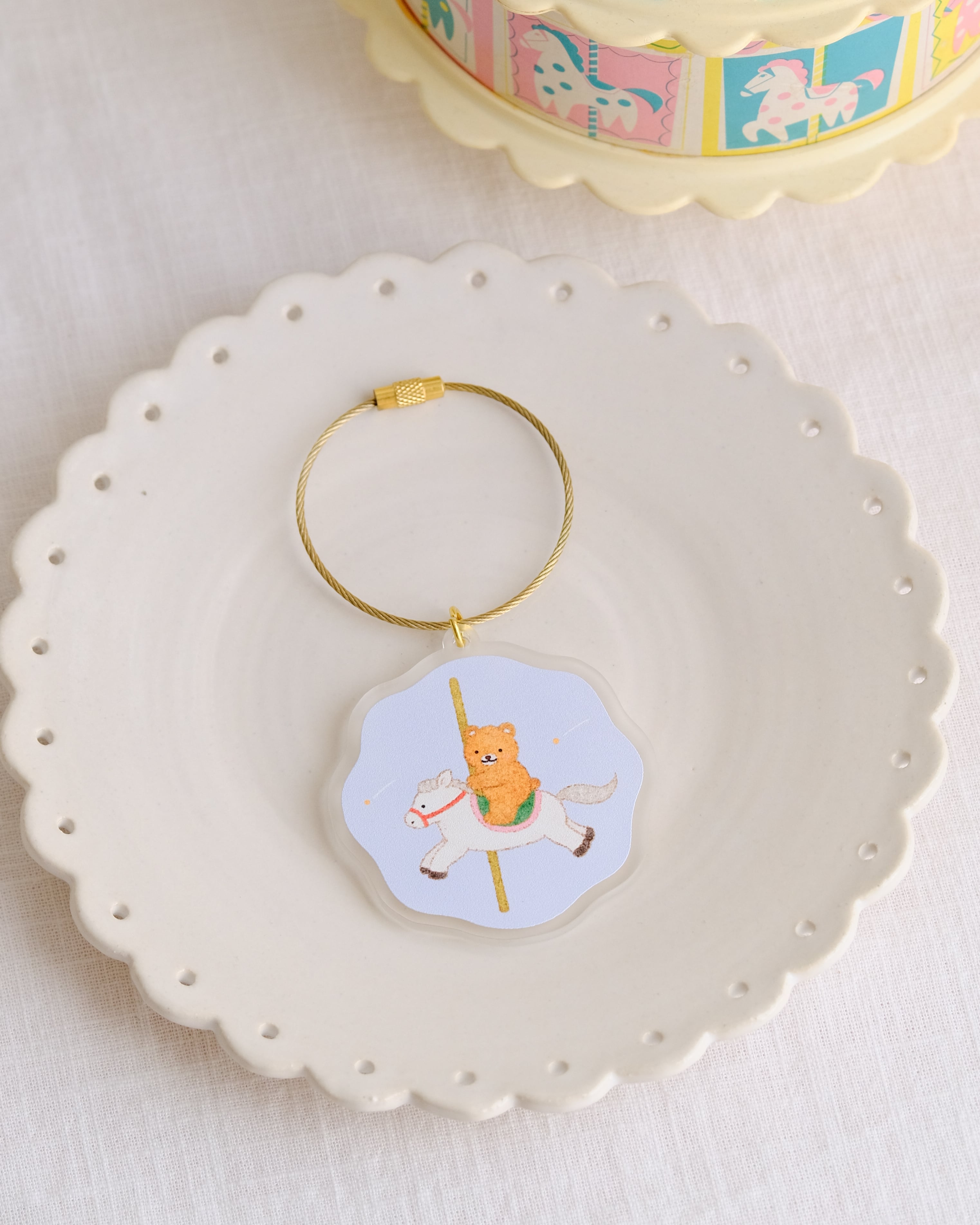 メリーゴーランドに乗るくまさんのアクキーです。