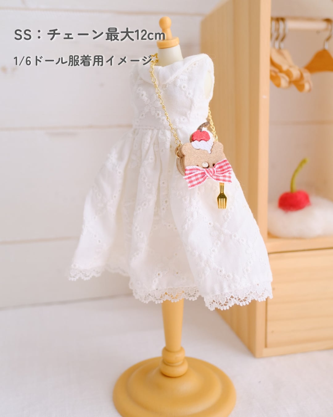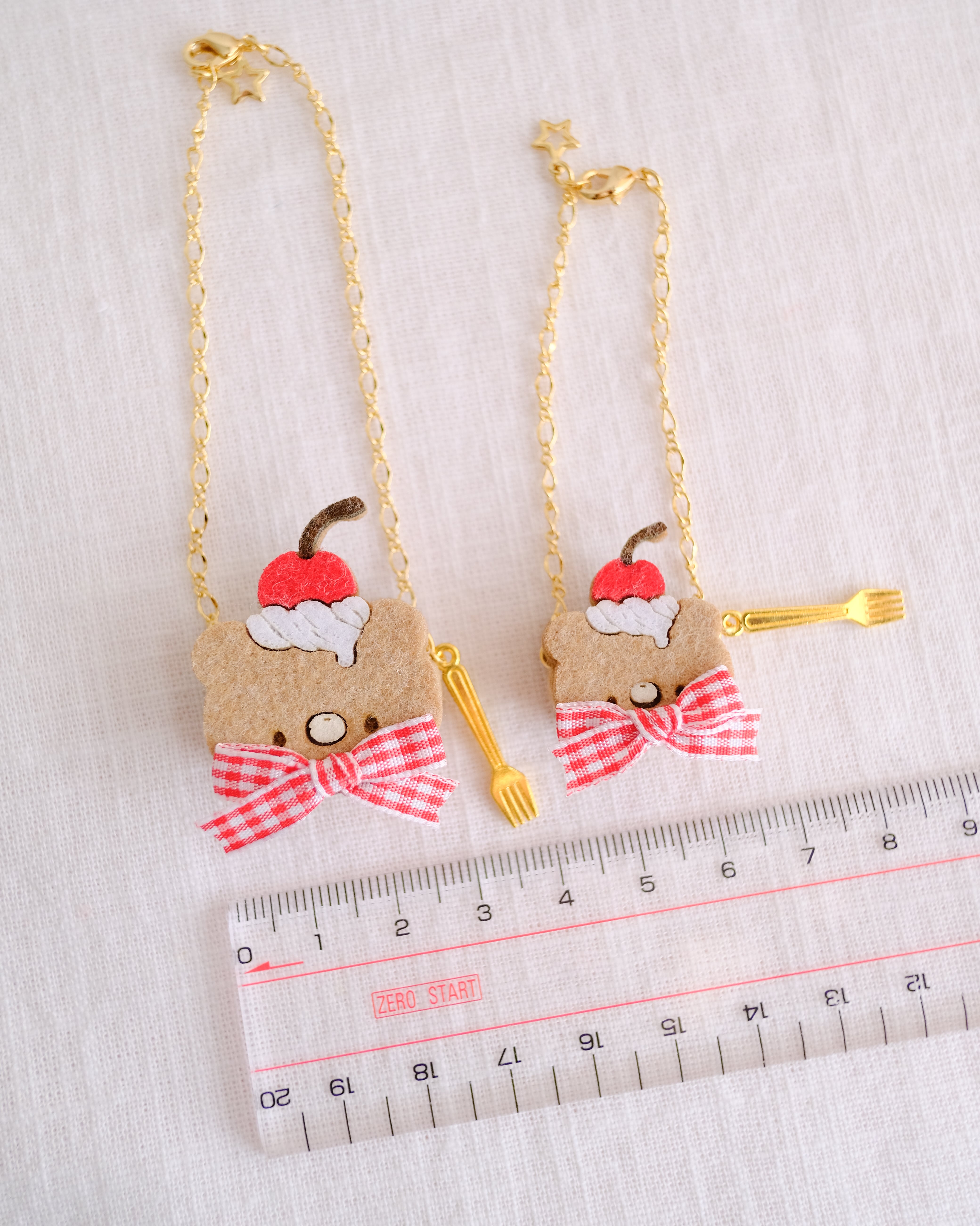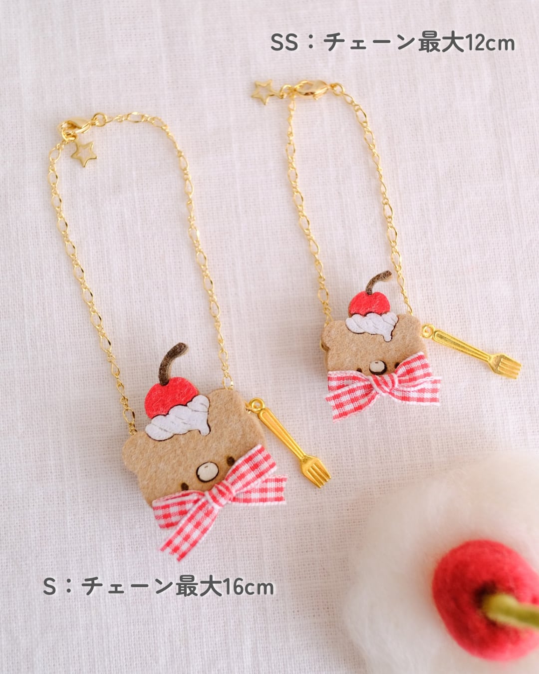 小さなくまの人形の身長は7cmでSSサイズのチェーンを少し短く調節して着用しています。