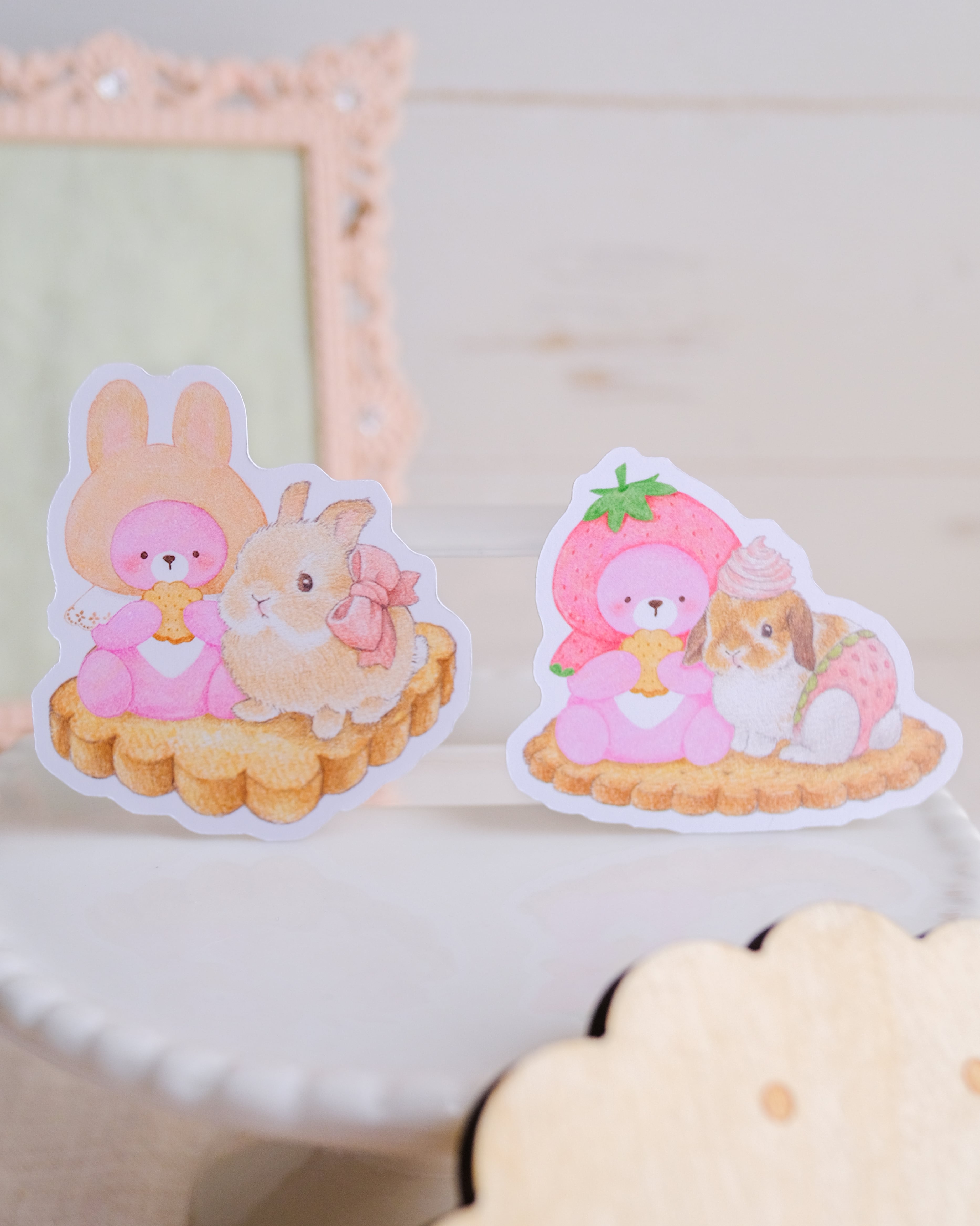 うさぎやイチゴのかぶりものをしています♡